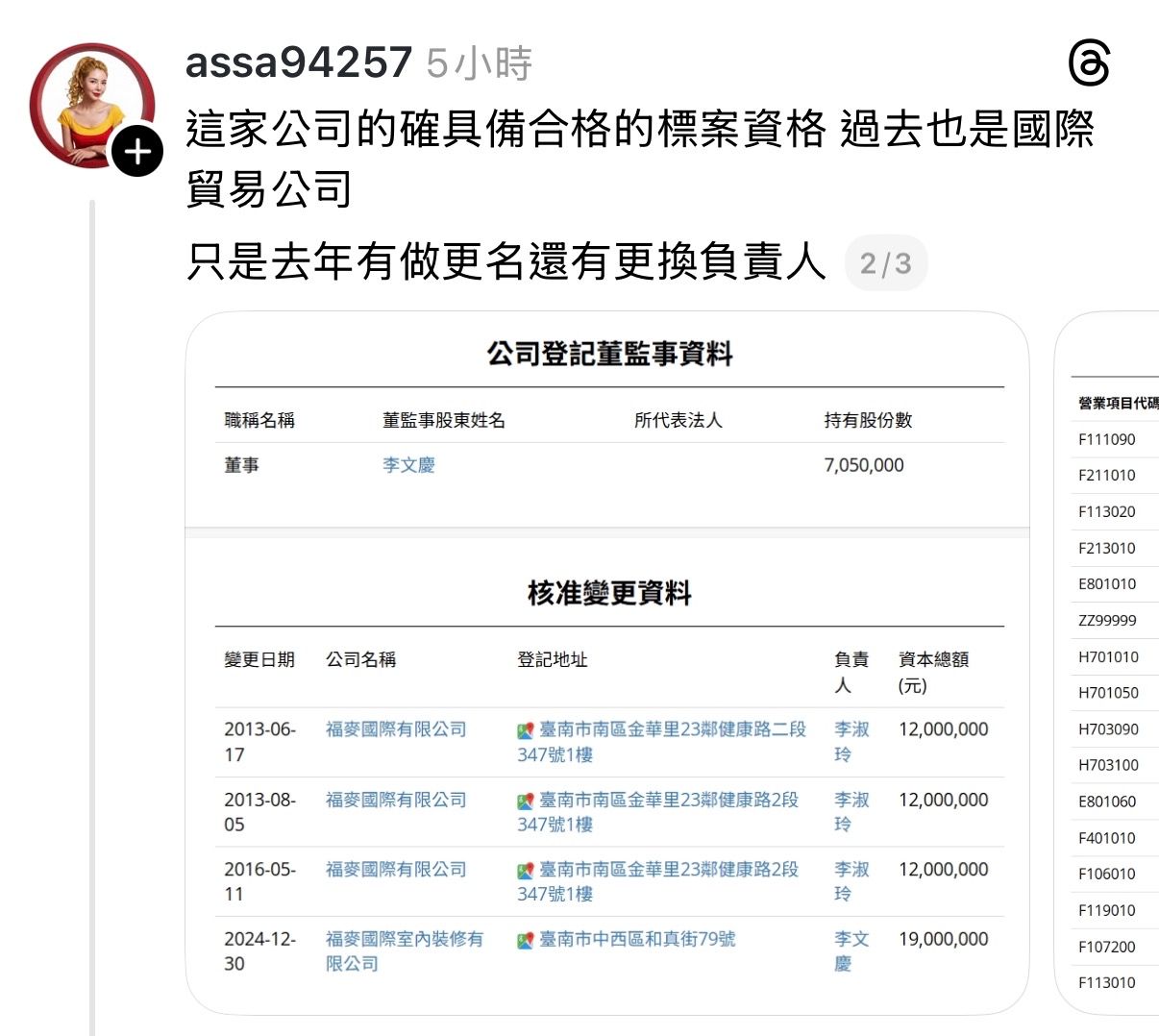 推 rainbowcrash: 營業項目登記的門檻超低耶 114.137.246.16 12/11 08:41