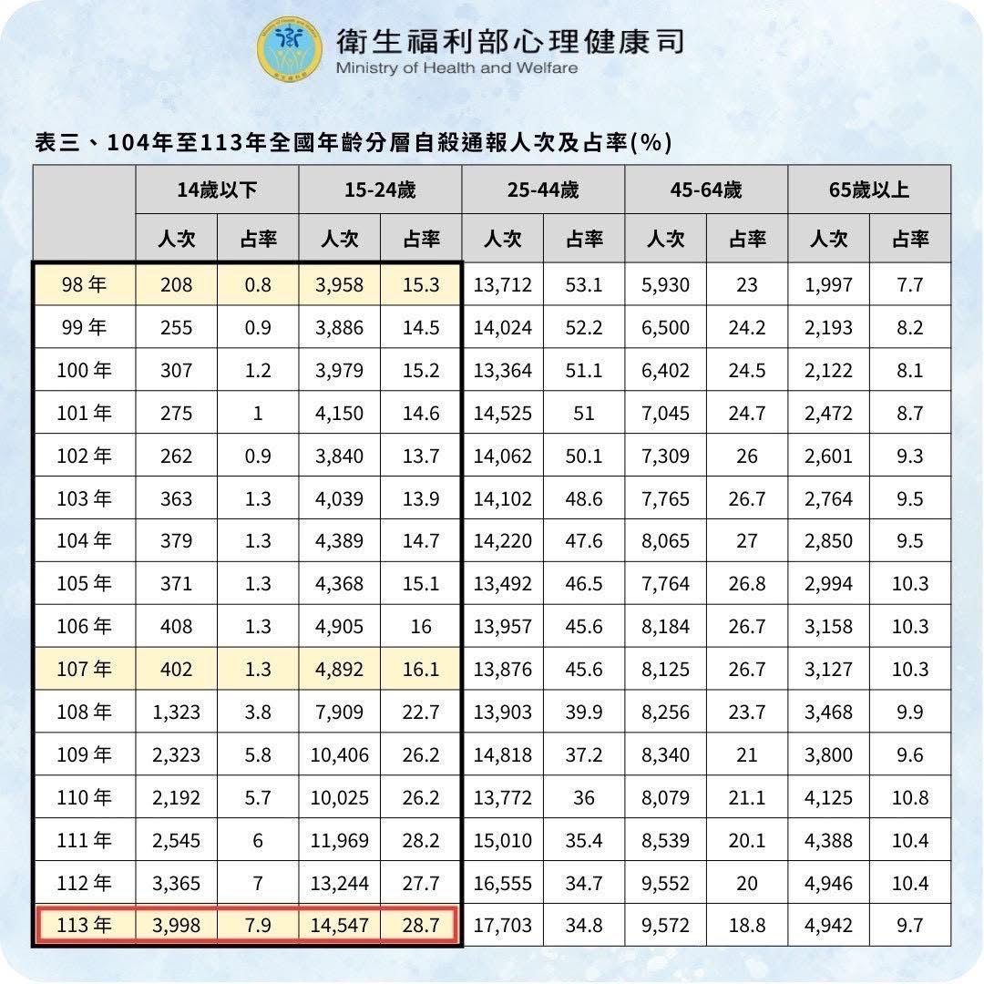 → nekoares: 自殺率老人持續下降 年輕人急升 114.45.145.221 12/11 14:07