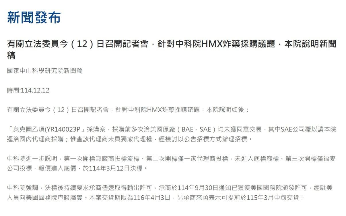 → pooznn: 中科院:HMX炸藥採購 已獲美國務院輸出許可 111.240.25.39 12/13 12:18