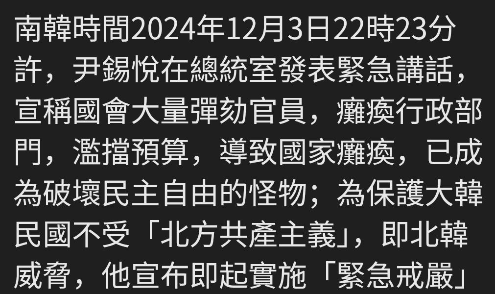 → ssccg: 議員成功開會解除戒嚴他也只能投降218.211.167.224 12/15 13:54