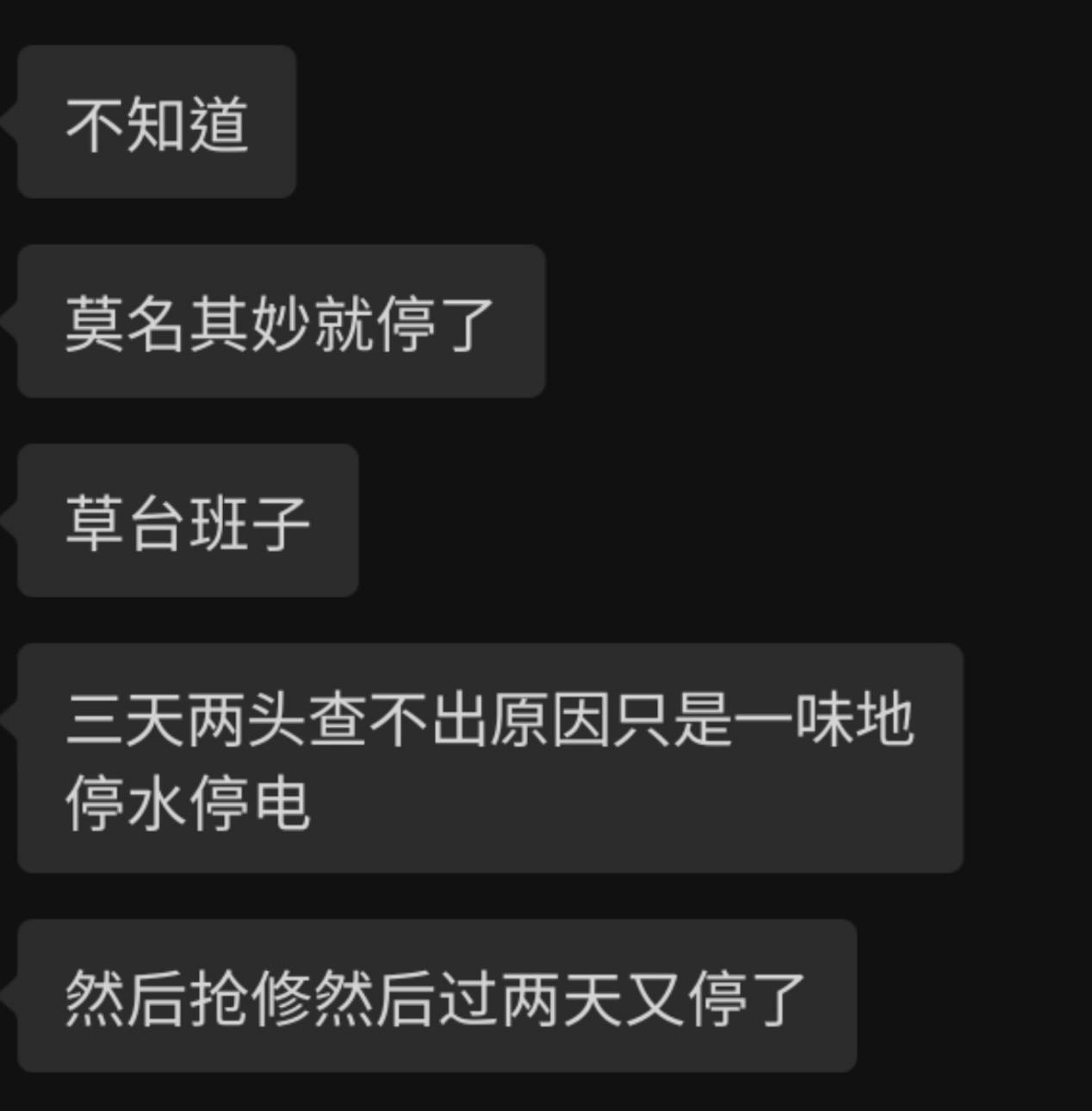 她也說她家三不五時沒通知就停水停電