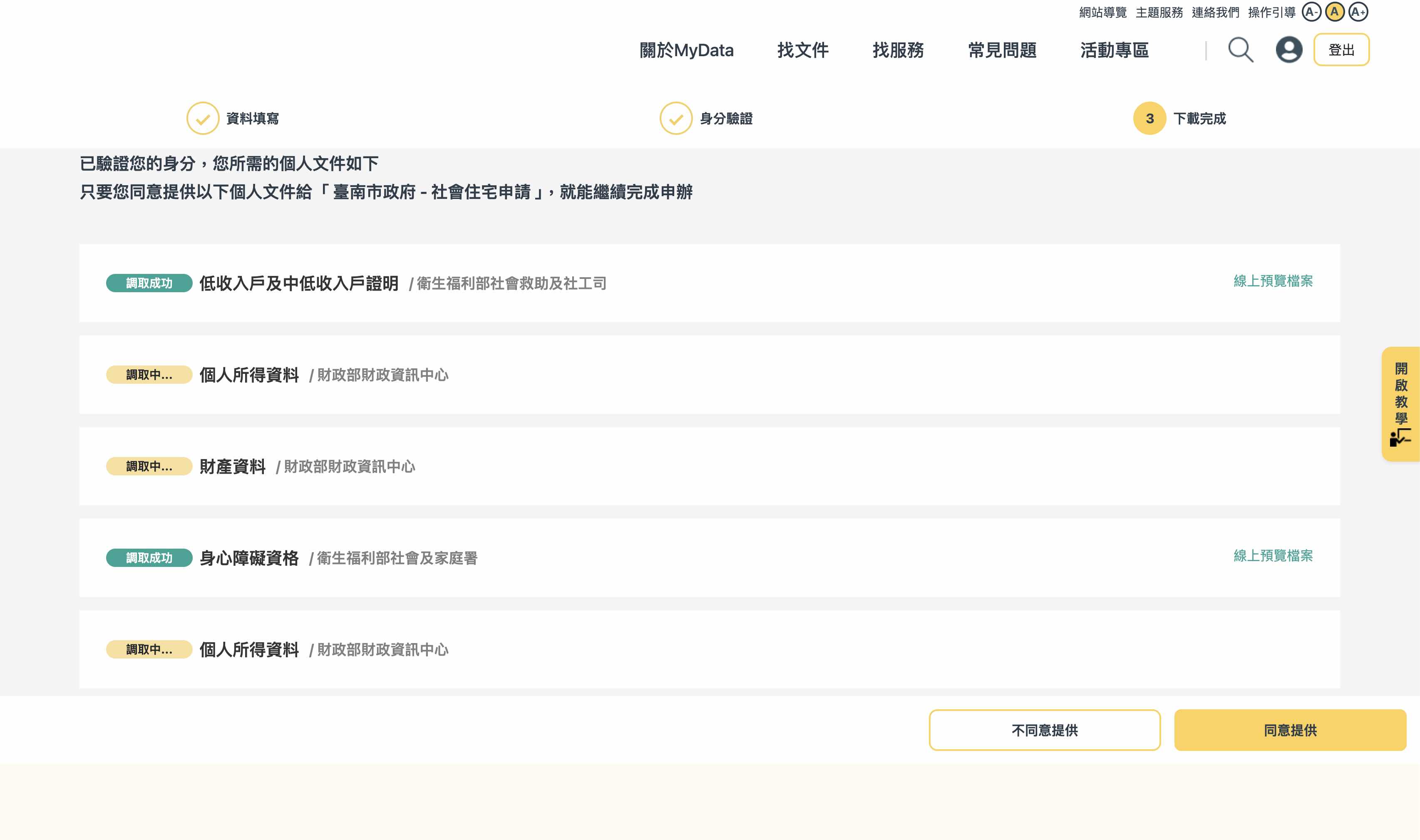 : 從昨天同意後到今天,都跟我講說給台南市政府平台了,給了。