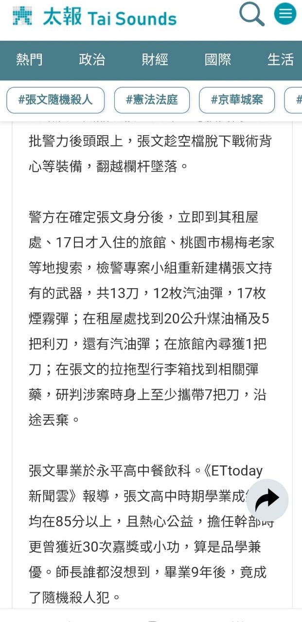 → hidewin200: 張嫌的砍傷,那邊消防設備應該沒爛成 1.162.80.168 12/21 09:23