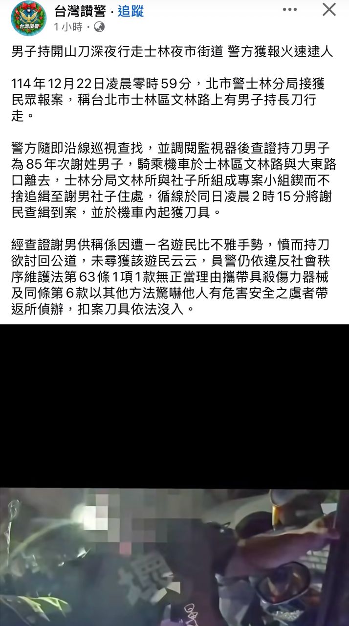 標題[新聞] 有人持刀凌晨逛士林夜市!民眾拍下畫面