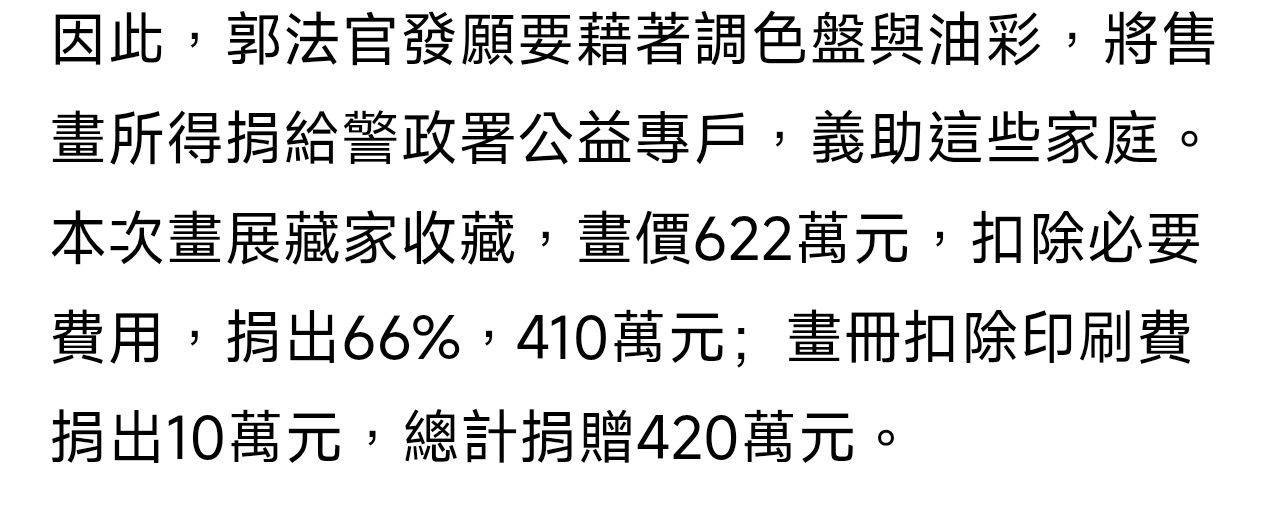 推 cmcmisgod: 收入六百多萬那畫展是為了挺警察遺族 42.72.92.167 12/22 21:03