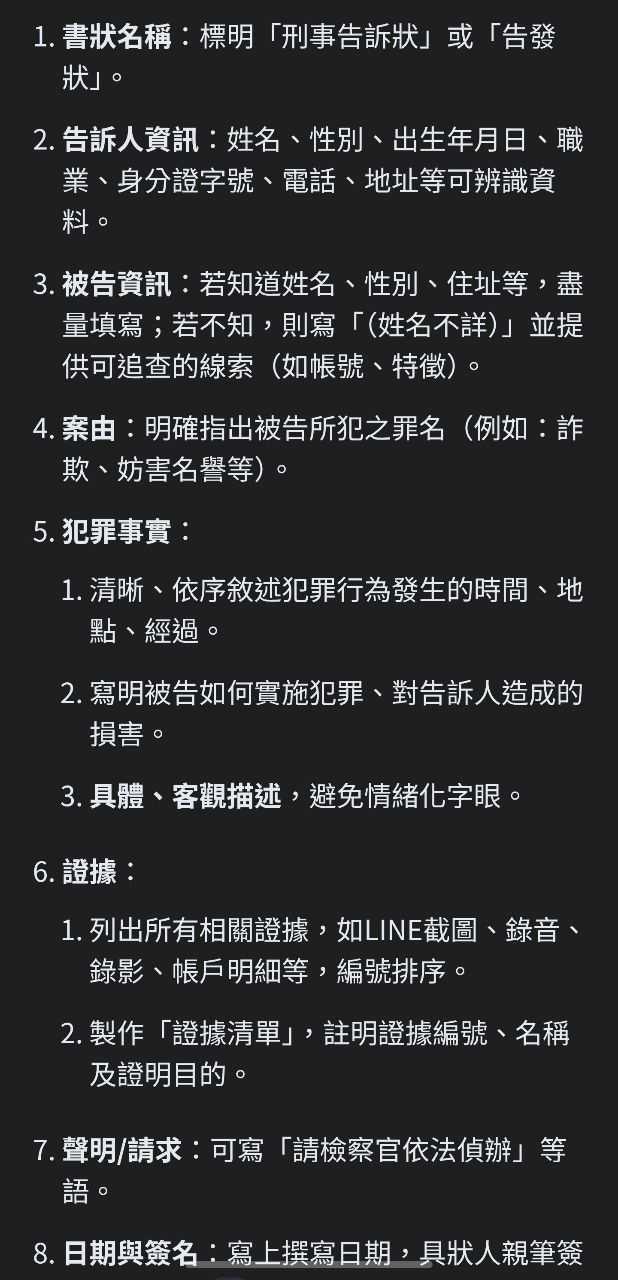 : 我研究一下告發狀是需要附上證據