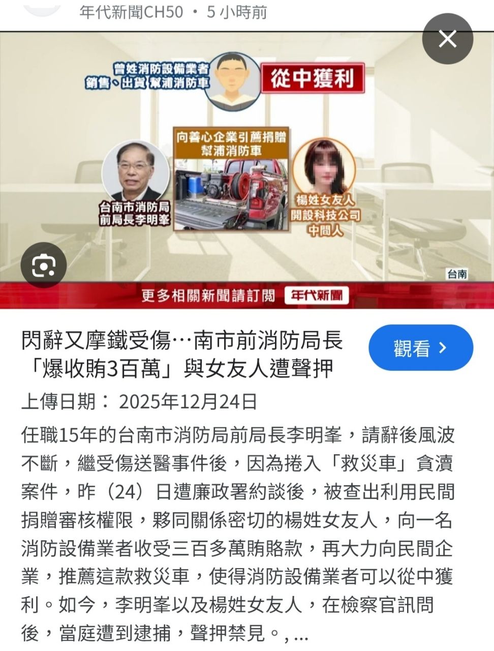 標題[新聞] 閃辭又血濺摩鐵 台南市前消防局長李明