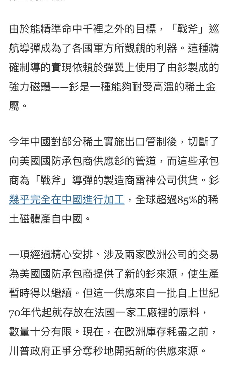 推 katzlee: 問題稀土美國or 其他國又不是真的做不出 36.227.24.186 12/25 22:22