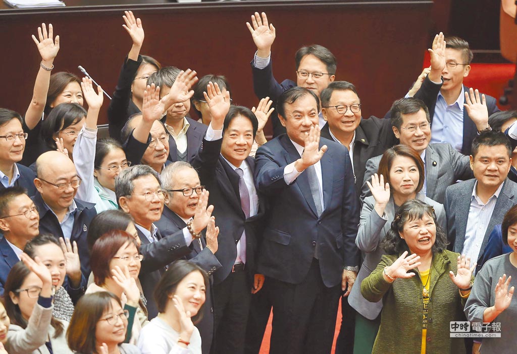 立法院臨時會10日完成處理108年度中央政府總預算案,行政院長賴清德(中)與立法院