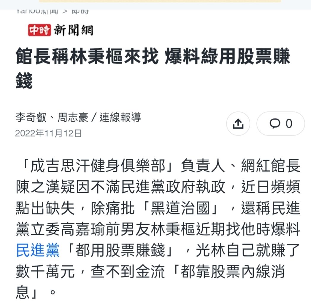 說到股票內線消息,民進黨自己哪時侯要辦啦,林秉樞找館長時就爆料出來了