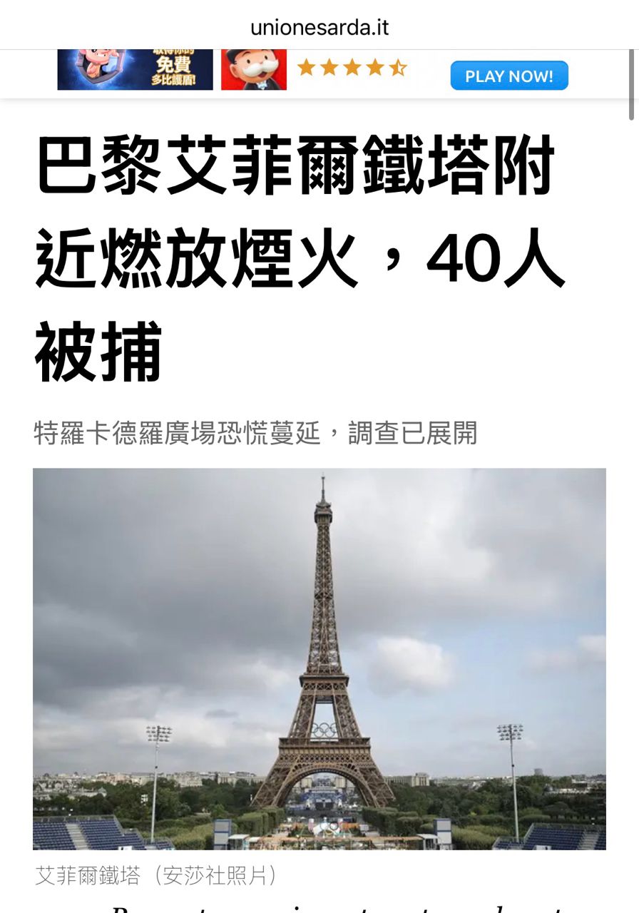 稍早巴黎艾菲爾鐵塔有40人因投擲煙霧彈跟煙火被逮捕,不知道他們想做什麼?