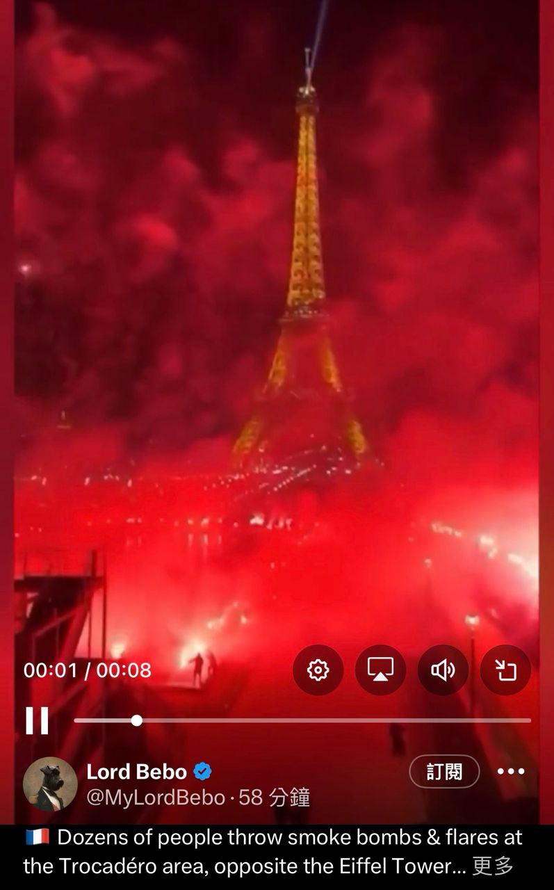 標題[問卦] 艾菲爾鐵塔有數十人投擲煙霧彈及煙火