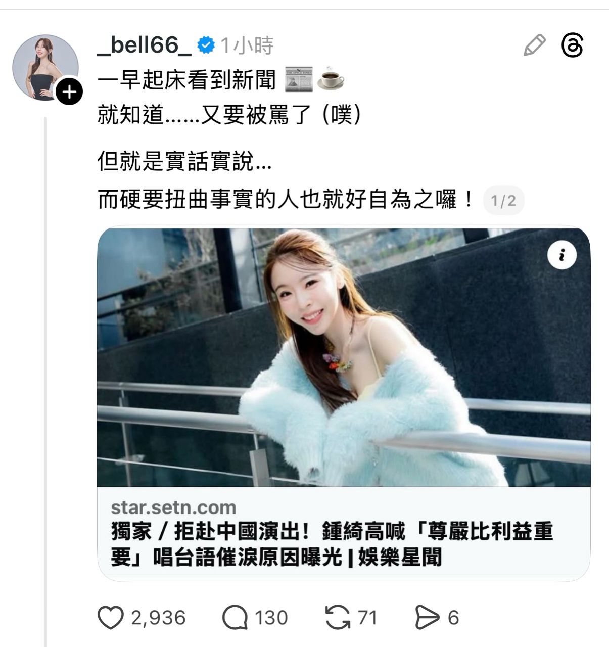 → ziso: 而且看起來好像是唱台語歌的..誰認識妳啊 1.162.97.96 12/28 21:10