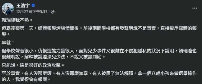 但王浩宇到昨天還連發兩篇在挺