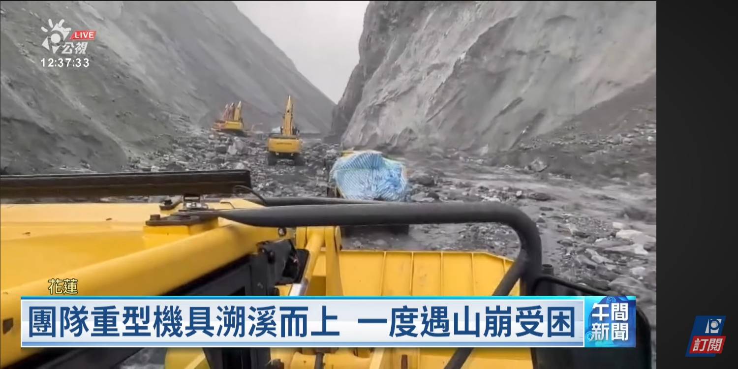 15日的時候還一度遇上山壁崩塌,機具慘遭淹沒。