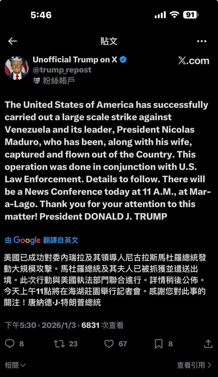 推 mark845: 川普威武,馬杜洛為何不慌223.141.247.111 01/03 22:25