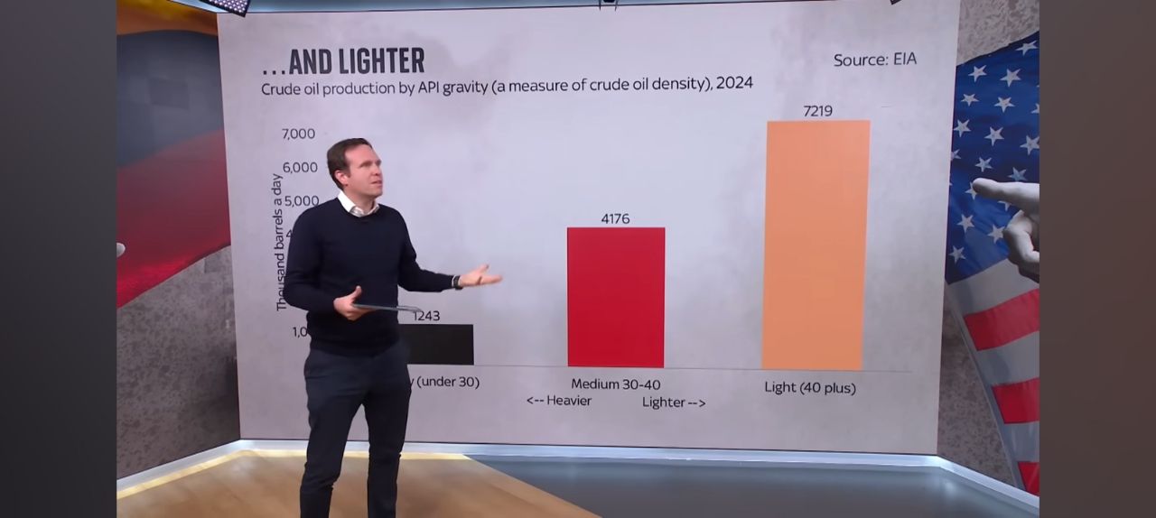 而美國開採頁岩油的結果就是油品輕油的比例逐年升高,至2024年輕重比例差距來到1:6