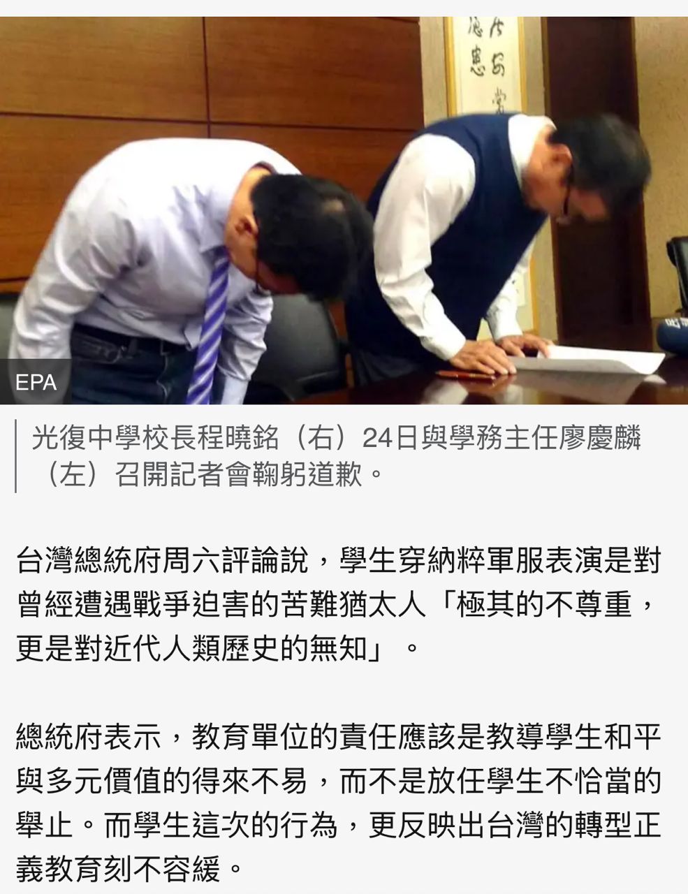 學生扮納粹 炎上到學校校長辭職