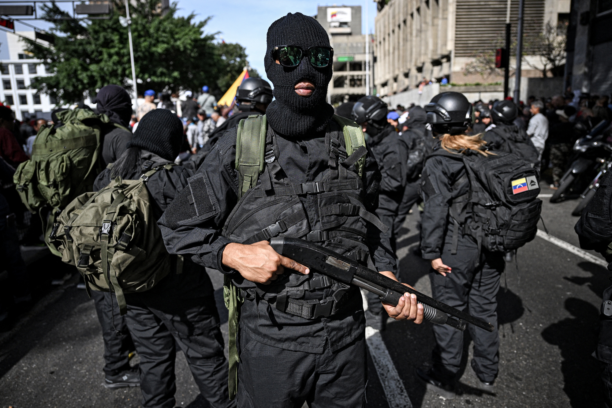 馬杜羅的武裝支持者聚集在米拉弗洛雷斯(Miraflores)總統府附近。(Federico