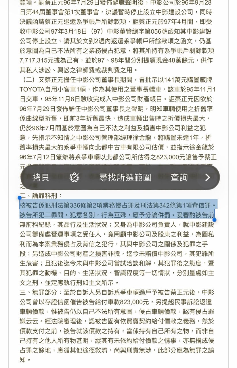 → IBIZA: 的官司是背信 跟阿波羅的才是侵占114.136.220.0 01/14 11:46