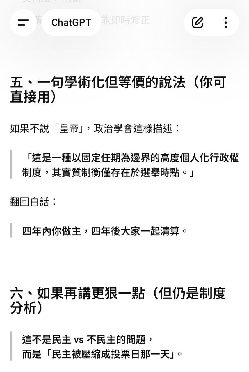→ iLeyaSin365: 樣 98%以上總統的權力無法動彈削減. 111.82.211.100 01/21 20:26