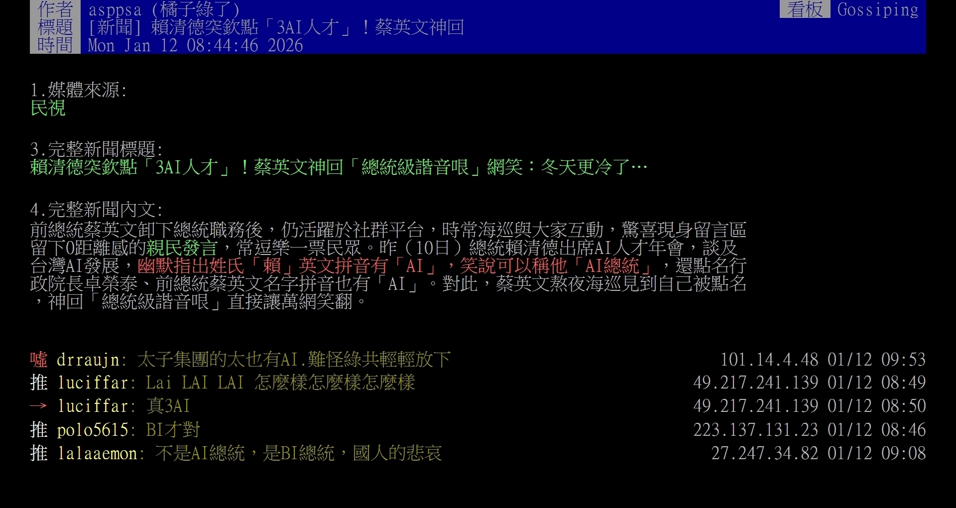 噓 orz151426: 賴清德的保證?那我看完蛋了 223.136.171.66 01/22 18:01