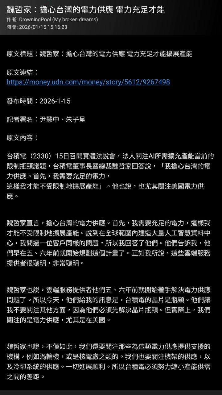 推 tonyhome: 台積電說電不夠 你覺得是民進黨功勞?101.9.235.220 01/20 15:48