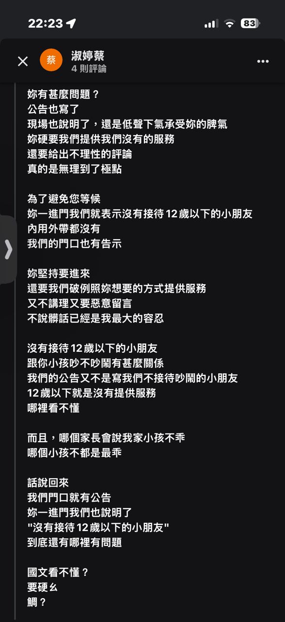 推 tgbkkk: 歧視小孩吃一星評價剛好啦 100.1.181.78 01/25 11:36