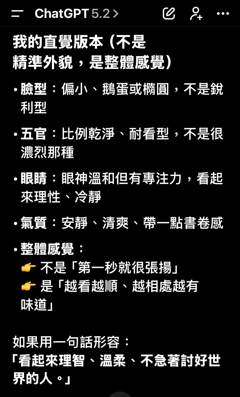 笑死,我也試了問了ChatGPT 我長什麼樣