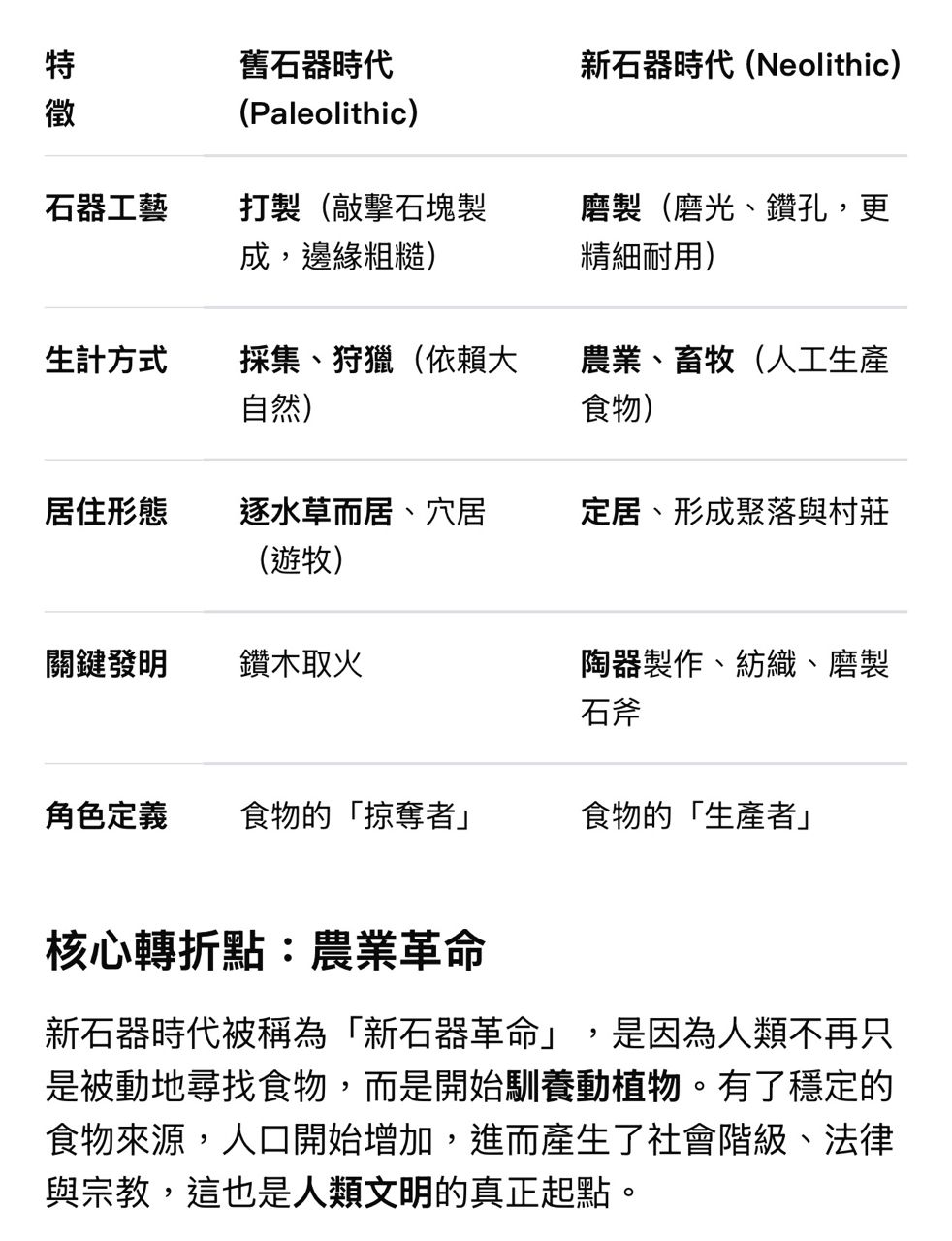 舊石器時代到新石器時代