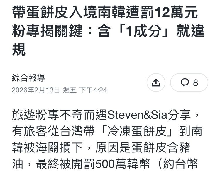 → hantulee: 跨國旅遊,食物類最好都別帶... 39.15.25.114 02/16 09:28