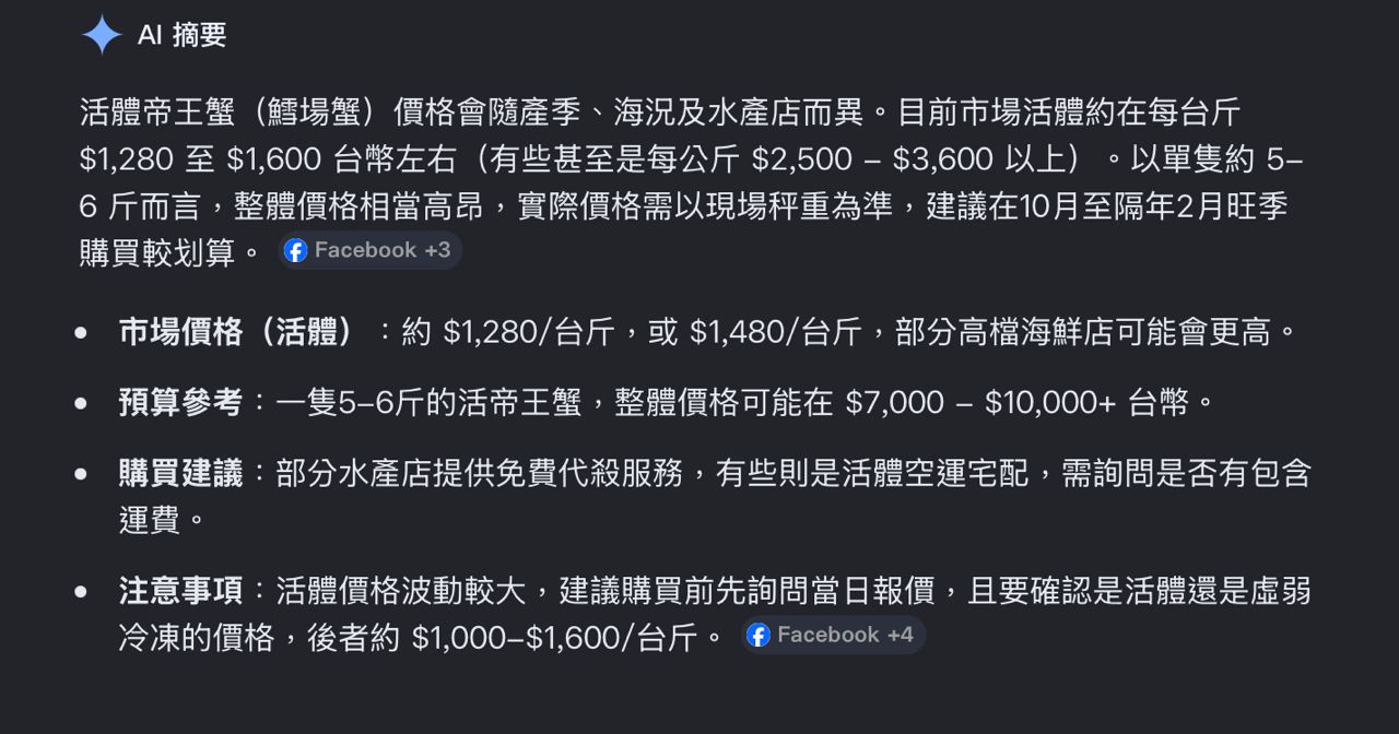 → jei01: 光那一大隻帝王蟹,台灣是一萬以上吧223.139.244.189 02/21 15:58