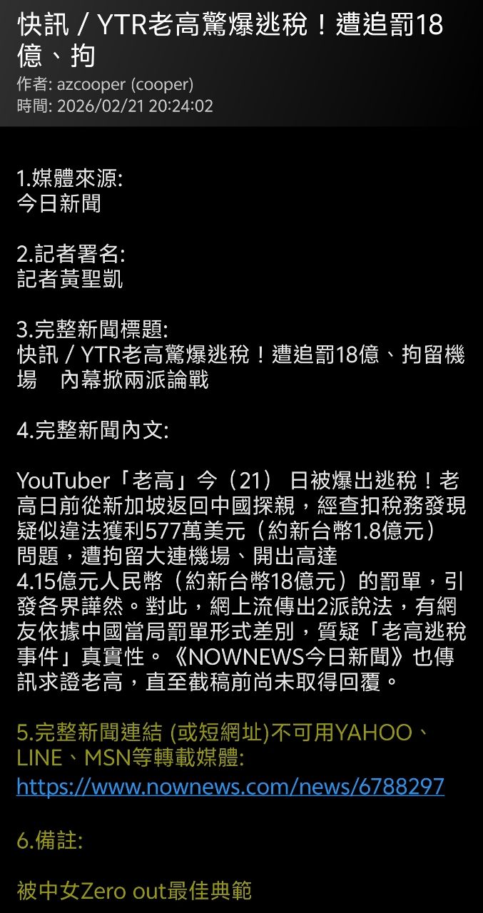 推 neos042: 造謠媒體該出來道歉說明了 49.215.150.235 02/22 12:20
