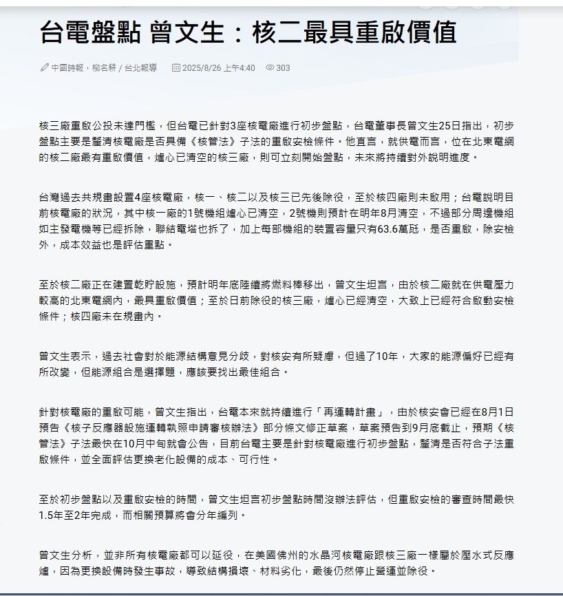推 coffee112: 核二將另提 台電曝自主安檢進度 1.174.241.85 03/03 16:15