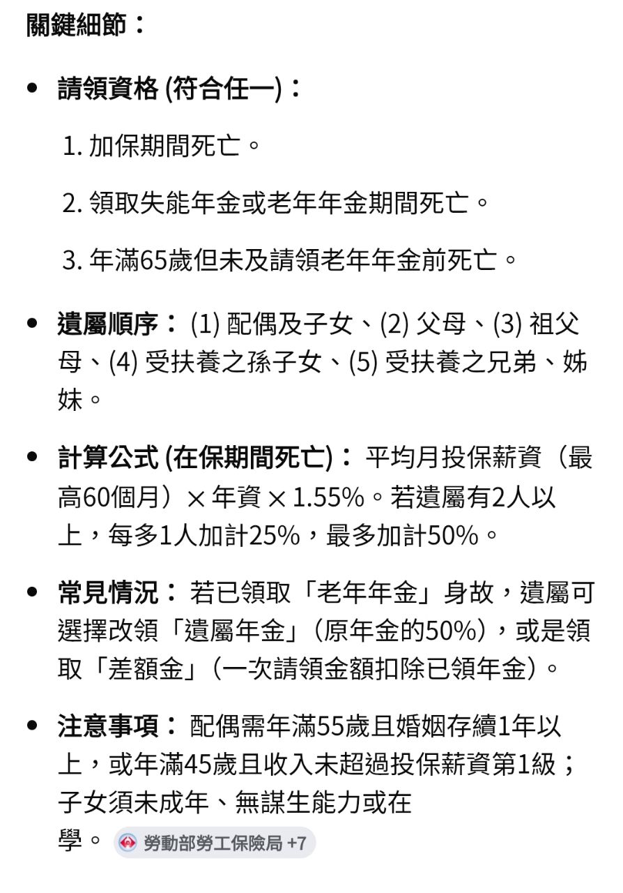 → IBIZA: 開始領年金之後過世 就是看有沒有符合遺屬 36.225.84.67 03/04 13:00