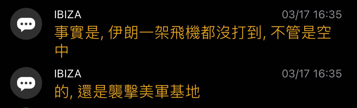 → IBIZA: 係 笑死 友人前幾天吹美軍基地被徹底摧毀 60.248.31.167 03/17 17:54