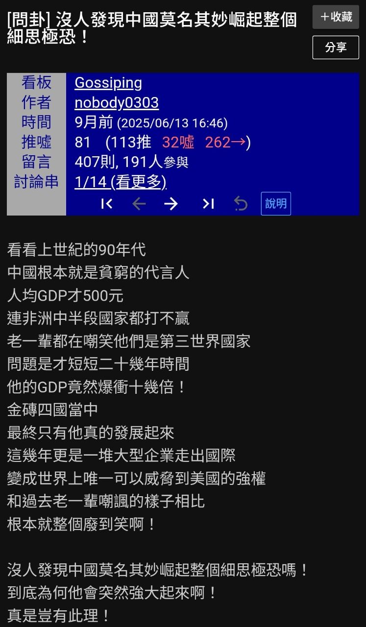 → Aueston: 中國落後50年才是真的莫名其妙 1.170.88.46 03/24 12:54
