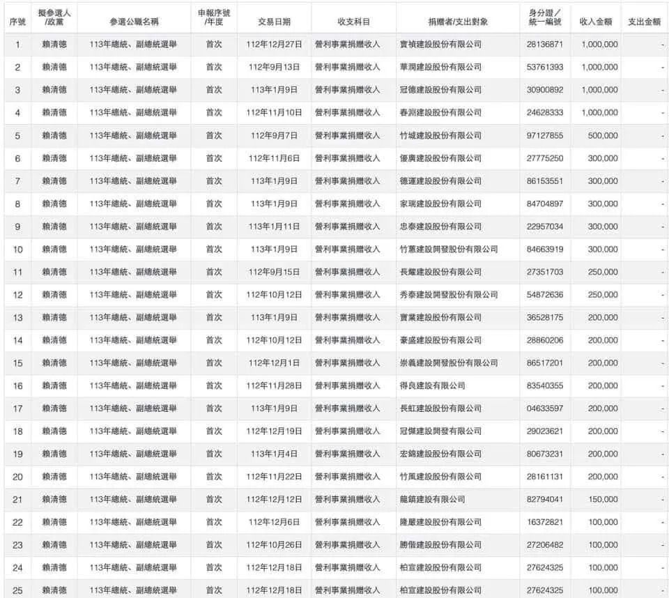 建商給的這些政治獻金