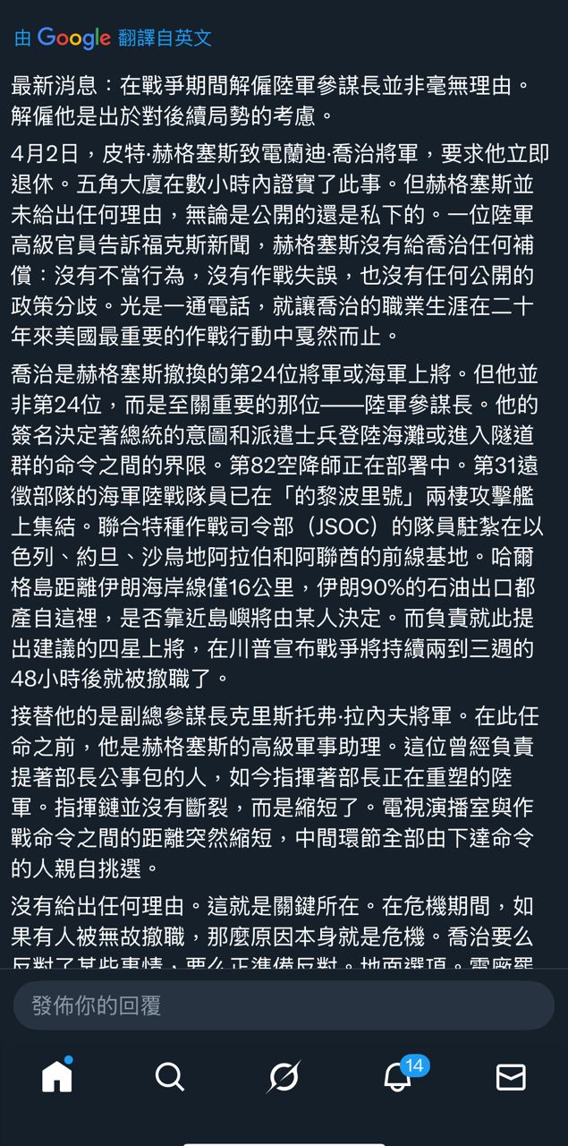 剛剛川寶的戰爭部長赫格薩斯把服役20年的陸軍陸軍參謀總長Randy George開除了