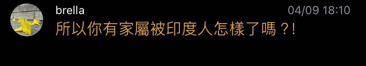 → brella: 所以你有家屬被印度人怎樣了嗎?!114.140.123.198 04/09 18:10