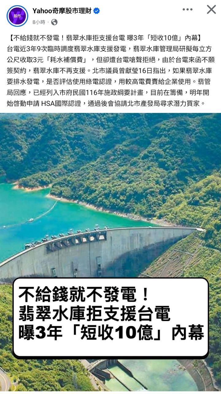 推 jasonpig: 翡翠水庫是台北市政府的114.136.160.179 04/17 18:48