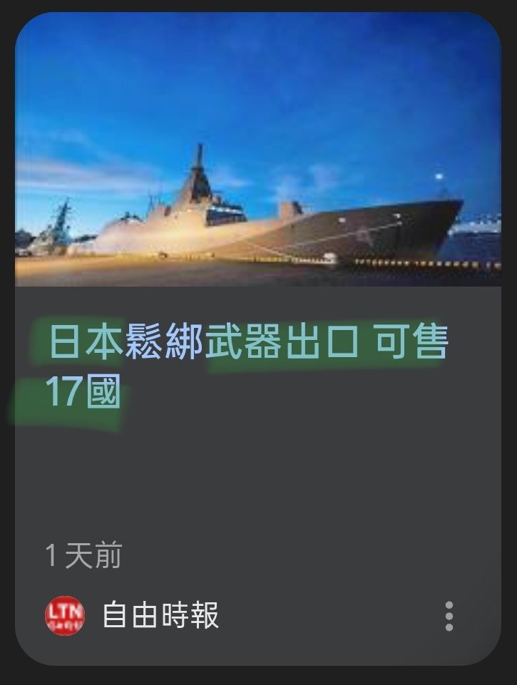 推 LoveMakeLove: 日本沒有把台灣列為可出口武器國家42.79.54.50 04/23 11:57
