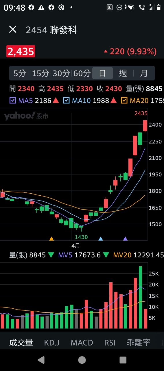 順便問一下,聯發科不到一個月漲了快一倍,今天又漲婷板了,到底有什麼利多消息呢,