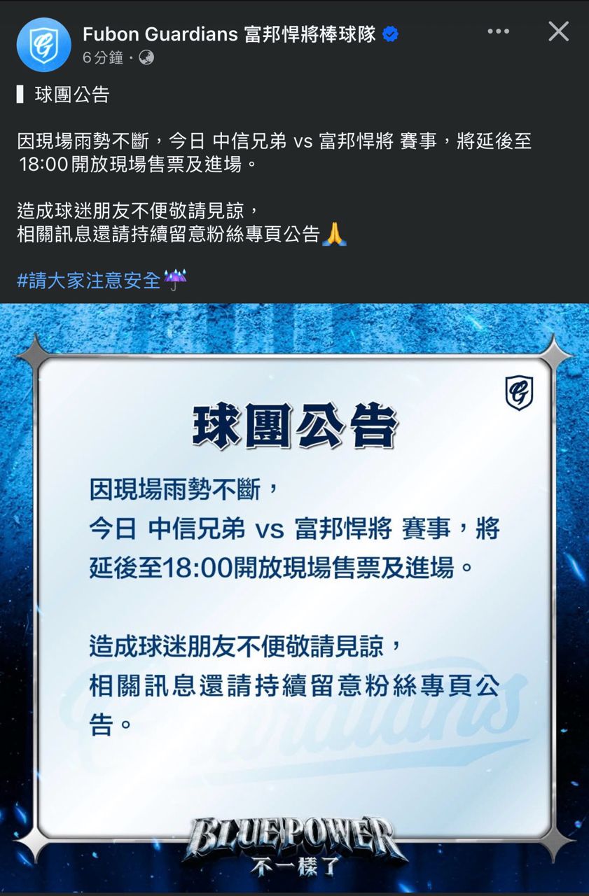 推 prodd: 這個雨有點大希望球團趕快決定謝謝 04/04 12:43