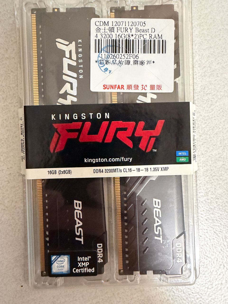 金士頓16G (8G*2)記憶體 有兩組(3200跟2666)