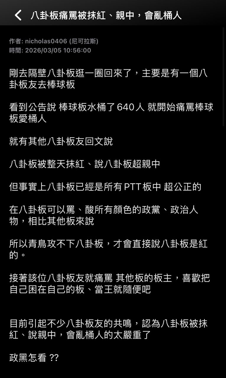 → zeuswell: 能用有政黑點?這篇文章的政黑點是政黑版有怎麼看是不是 03/05 15:02