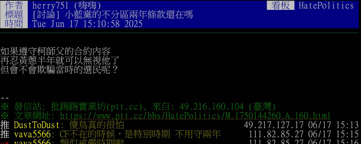 │ 文章網址: https://www.ptt.cc/bbs/HatePolitics/M.1750144260.A.160.html │