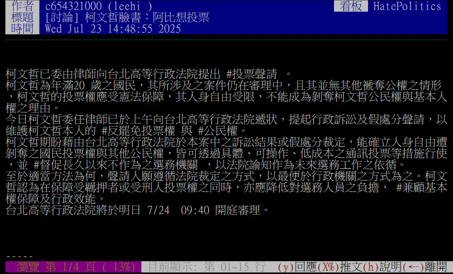 ※ 文章網址: https://www.ptt.cc/bbs/HatePolitics/M.1753273143.A.7E0.html