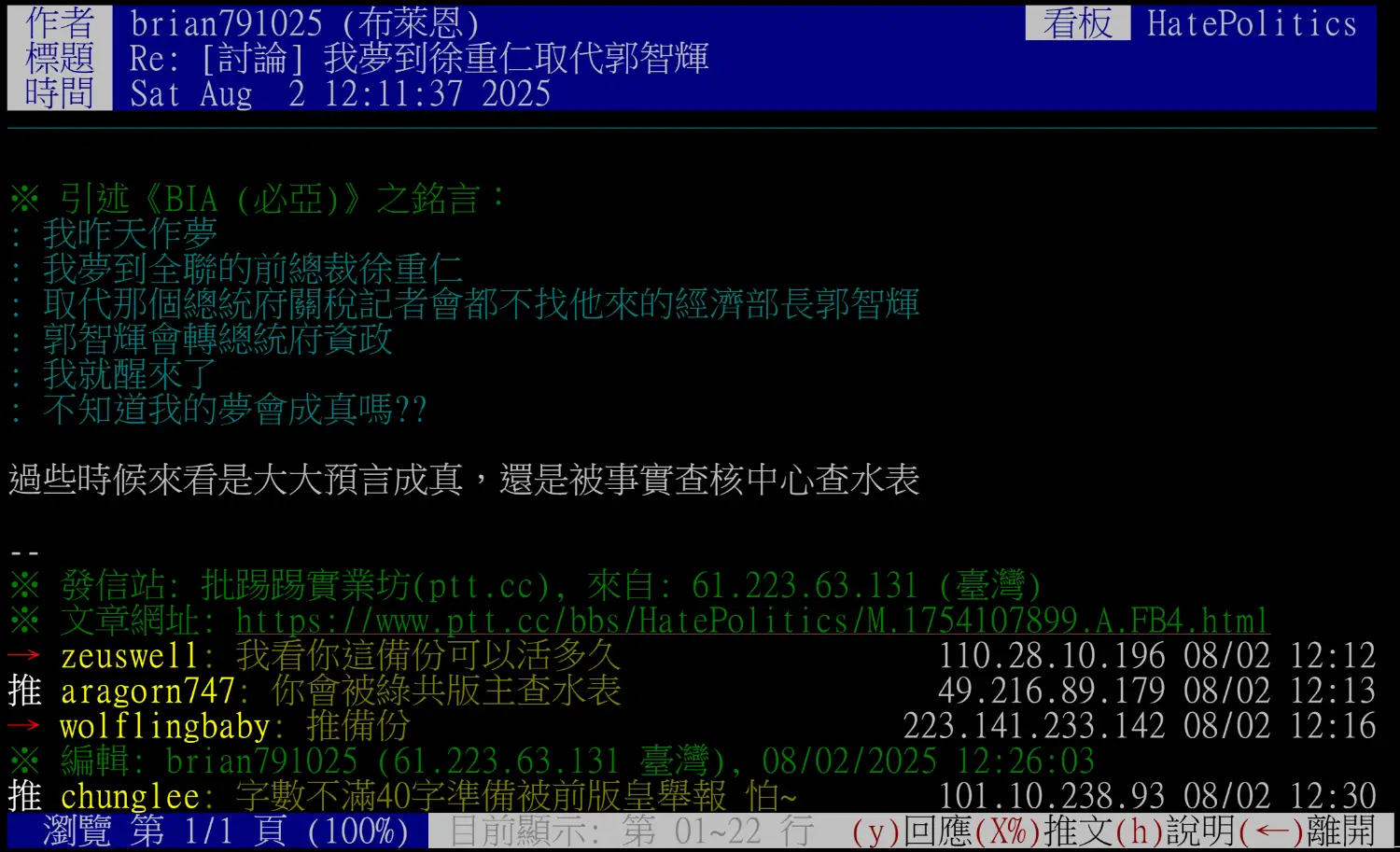 ※ 文章網址: https://www.ptt.cc/bbs/HatePolitics/M.1754109437.A.637.html