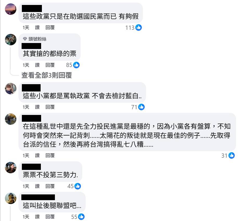 看底下留言 打這些小黨比打藍白還狠